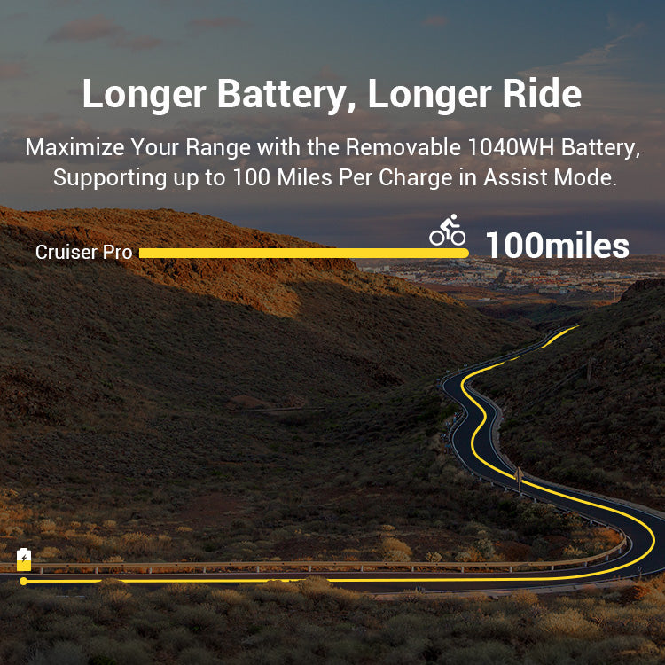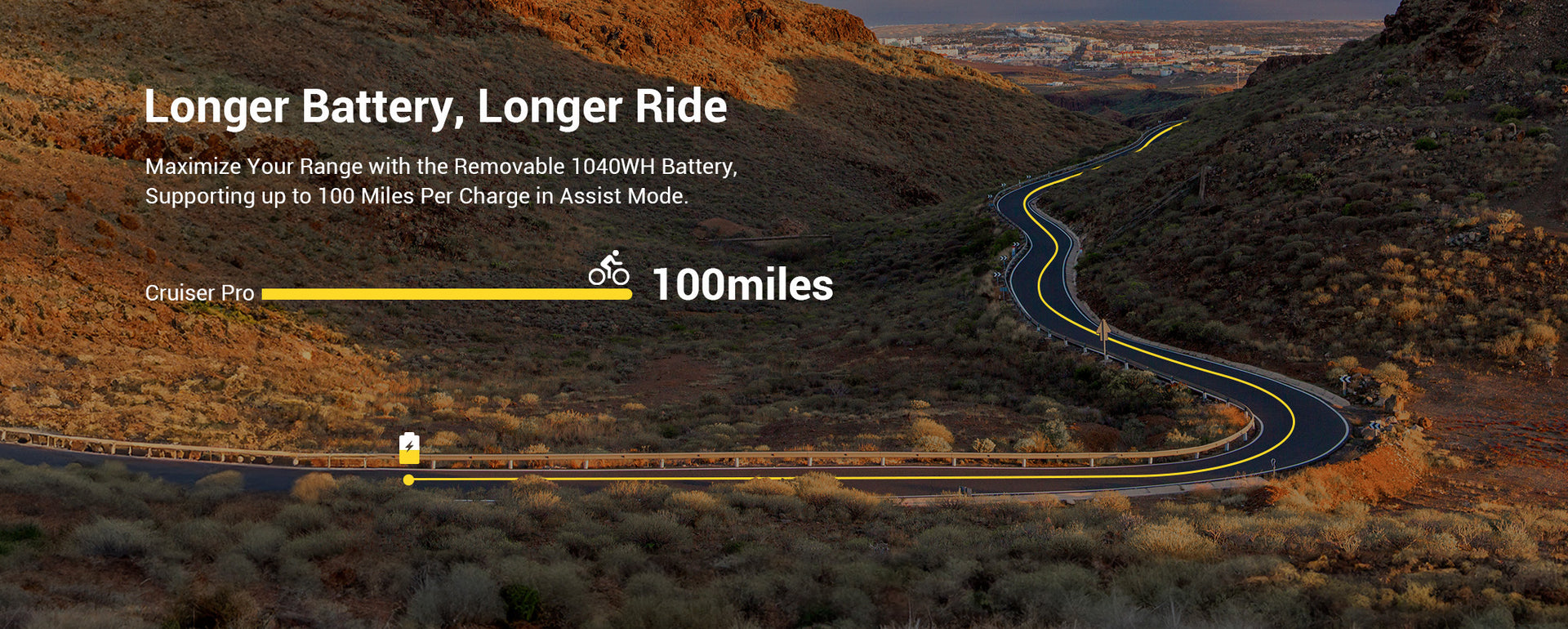 Its upgraded output system extends the range of the 52V 20Ah battery for uninterrupted rides. Enhanced safety is guaranteed with hydraulic brakes, providing precise braking control, especially on downhill slopes. Experience boundless excitement with the Cruise Pro – your ultimate companion for exploration and exhilaration.