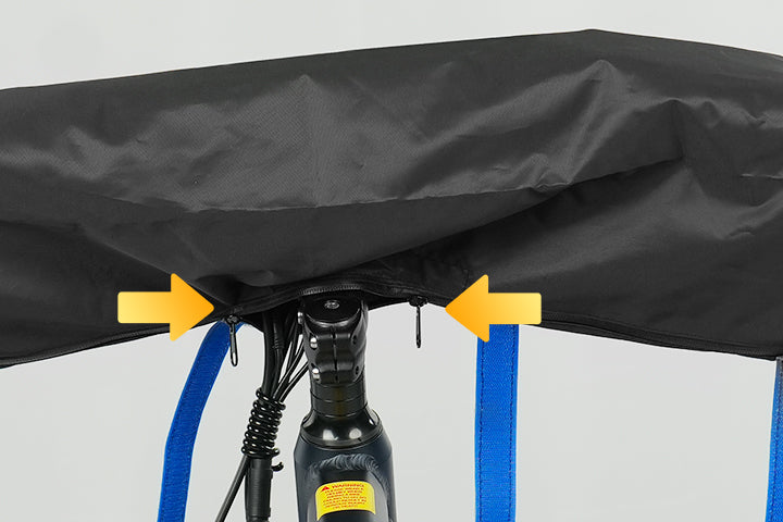 Close the zipper of the handlebar cover